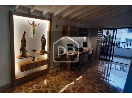 Tres alcobas con closet, con closet de linos, 4 baños, sala comedor, zona de ropas, alacena de mercado, cocinba integral abierta, hall biblioteca, balcon, garaje con area de 18mts2 aprox.